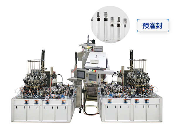 西林瓶生產線包括:自動上管、自動成型、經機械手轉換至前端檢測線(也叫生產管控)、檢測線檢測的項目:1、瓶口內外徑 2、瓶身長短 3、瓶身外徑 4、瓶口邊厚 5、瓶底內凹尺寸檢測;經檢測后的合格品再用機械手夾盤轉換至退火爐網帶上,經高溫減除應力后再降溫,通過氣動吸盤將回火后的小瓶轉換至后端檢測線,后端檢測(也是重檢也叫終檢),經后端拍照檢測項目