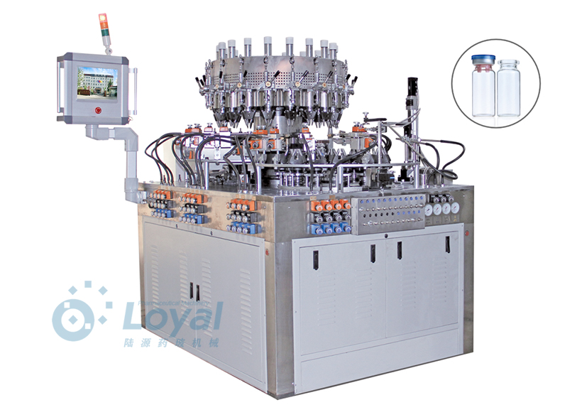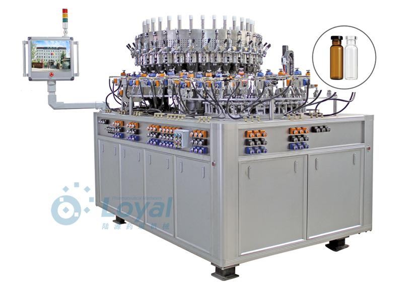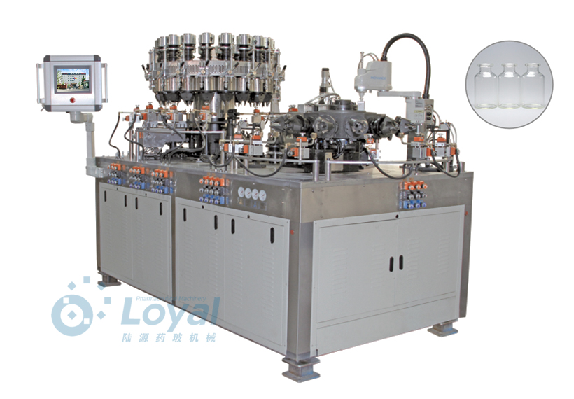 西林瓶生產線包括:自動上管、自動成型、經機械手轉換至前端檢測線(也叫生產管控)、檢測線檢測的項目:1、瓶口內外徑 2、瓶身長短 3、瓶身外徑 4、瓶口邊厚 5、瓶底內凹尺寸檢測;經檢測后的合格品再用機械手夾盤轉換至退火爐網帶上,經高溫減除應力后再降溫,通過氣動吸盤將回火后的小瓶轉換至后端檢測線,后端檢測(也是重檢也叫終檢),經后端拍照檢測項目 -